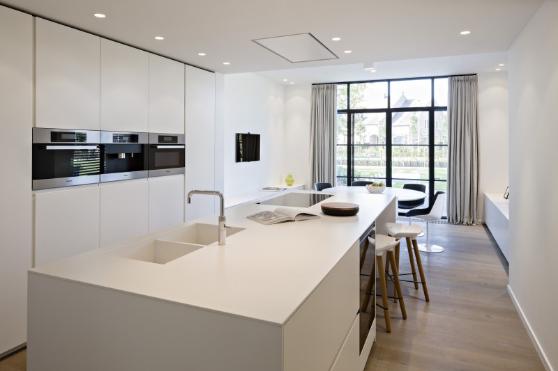 Het inbouwfilterelement heeft als doel een snelle en eenvoudige montage van het ‘filtergebeuren’ in de kap toe te laten. Door het filterelement in te bouwen en af te werken in hetzelfde materiaal als dat van de luifel vormt de dampkap een harmonieus geheel met uw keuken.